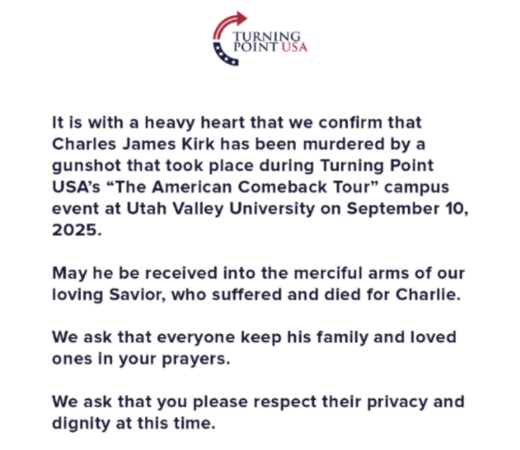 “Charlie Kirk was only 31-years-old, a husband and father of two young children. No matter the divisions in our nation